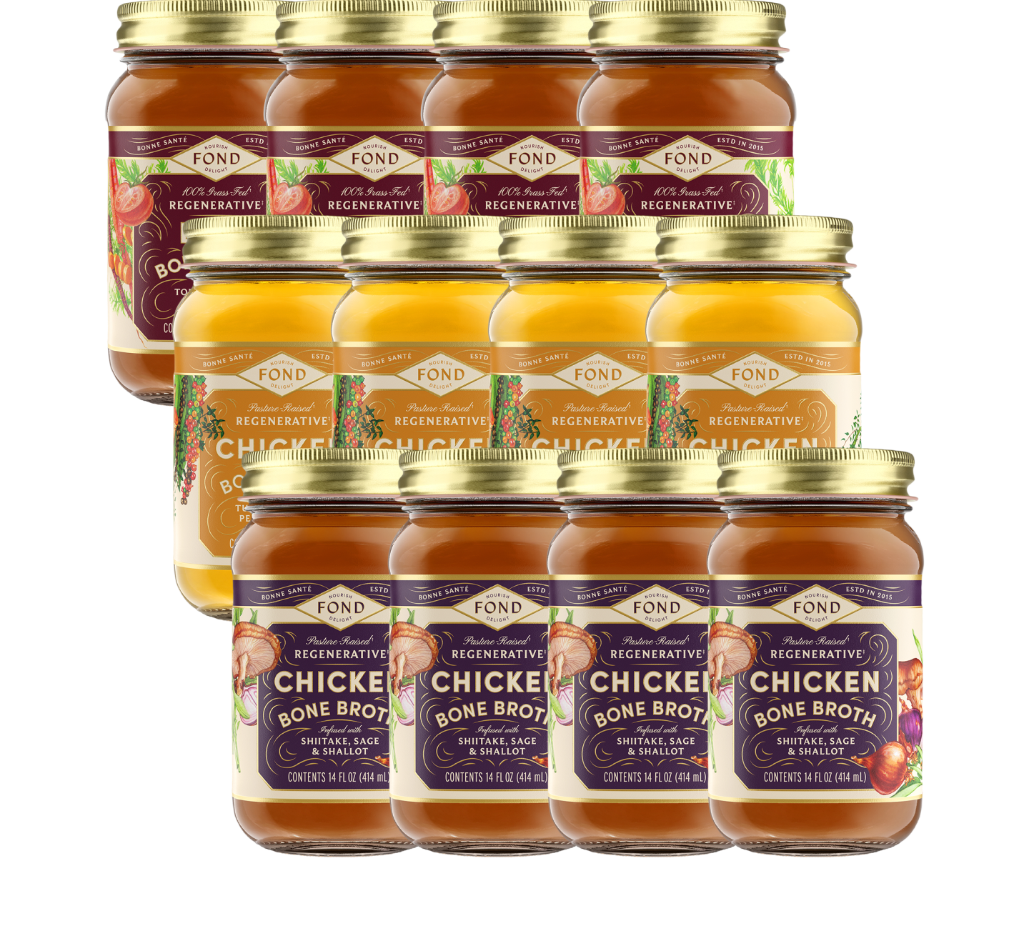If you’re choosing bone broth for fitness recovery, pay close attention to quality, ingredients, and sourcing. Regeneratively-sourced bone broth tends to be more nutrient-dense, and FOND's broth goes a step further, since its made traditionally, with a 1:1 ratio of bones to water (many brands use much more water than they do bones!). We slow-simmer those fresh bones and water for 18+ hours, then infuse many of our flavors with the benefits of organic vegetables and herbs. FOND is also seed oil-free, certified glyphosate residue-free, and has no nasty additives or preservatives.