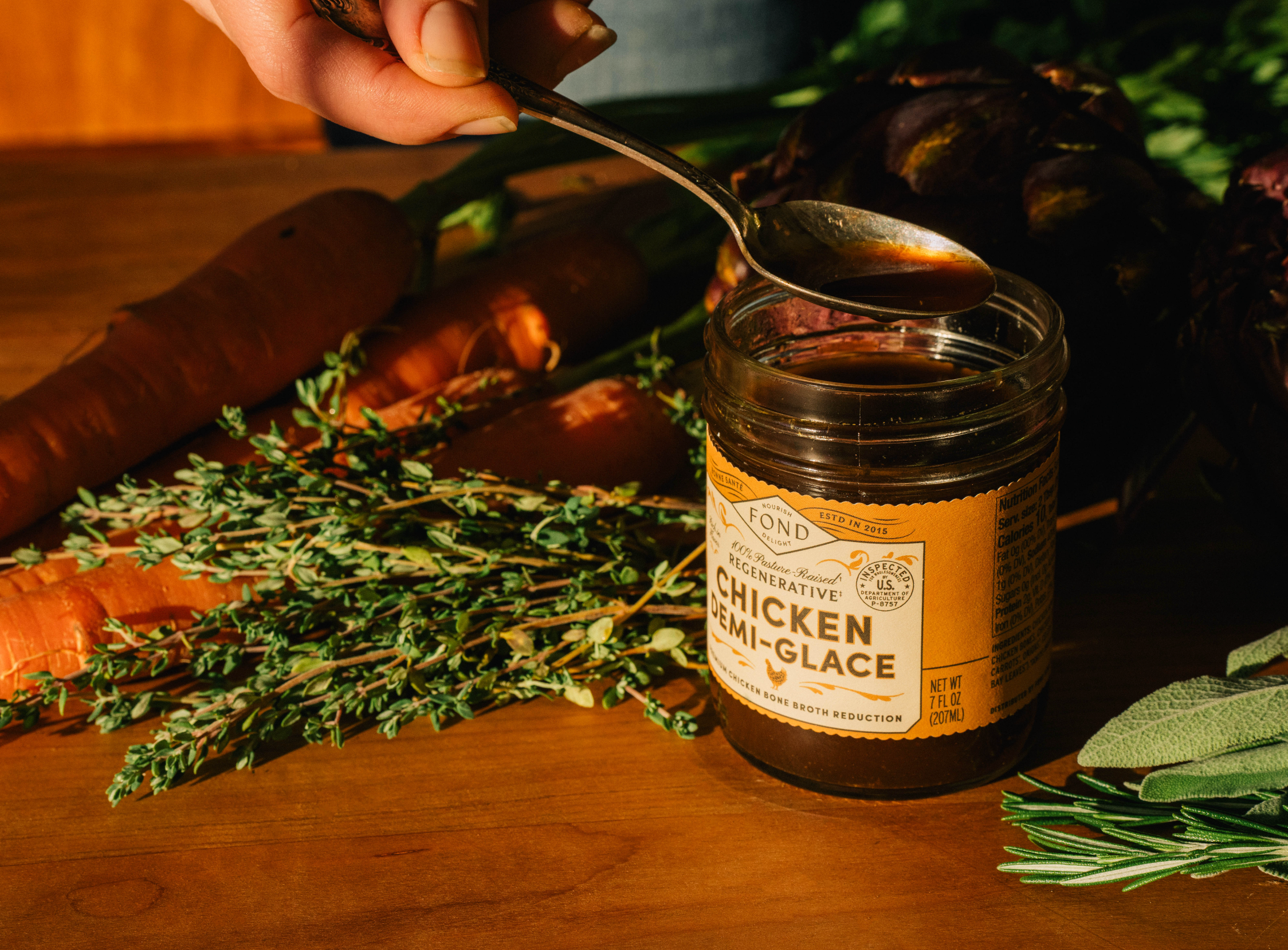 For home cooks who want restaurant-quality depth without spending hours at the stove, FOND's demi-glace is a regeneratively-sourced flavor foundation that transforms everyday dishes with just a few spoonfuls. We slow-reduce our artisan regenerative bone broth and organic aromatics into pure, concentrated flavor. Learn more...